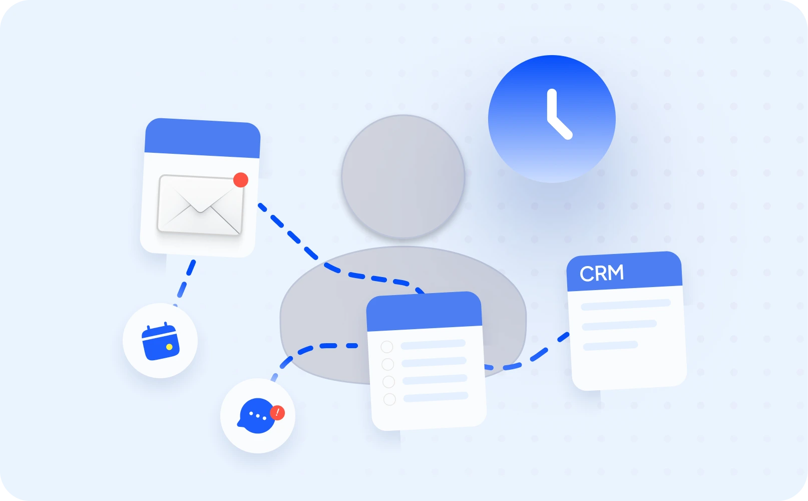 Zwischen Tools, Mails und Aufgaben geht viel Zeit verloren. Vertriebler suchen Informationen, schreiben Notizen und klicken sich durch Systeme, statt zu verkaufen.
