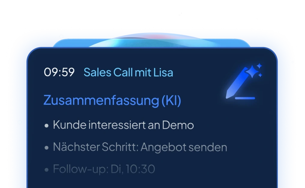 Nach jedem Gespräch erstellt die KI automatisch Zusammenfassungen im Kontakt, damit kein Detail verloren geht und jeder im Team sofort im Bild ist.