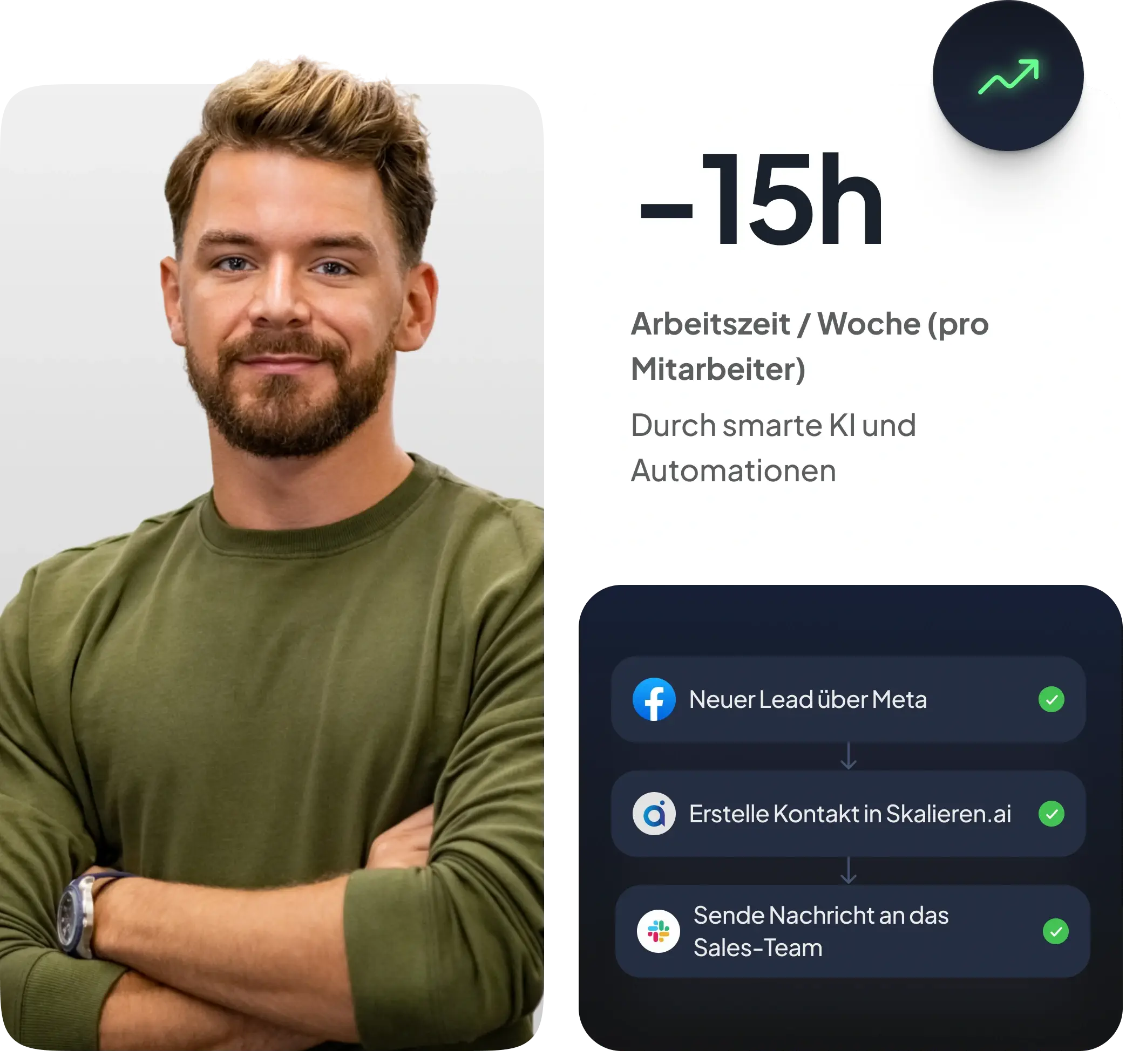 “Seit ich mit skalieren.ai arbeite, weiß ich endlich wieder, wo meine Sachen sind – kein Jonglieren mehr zwischen 17 Tools. Alles ist an einem Ort, alles läuft reibungslos – mein Arbeitsalltag fühlt sich an, als hätte jemand den “Easy-Button” gedrückt. Mein Workflow ist smarter, mein Kopf klarer und mein Kaffee bleibt endlich warm. Absolute Empfehlung für alle, die weniger Chaos und mehr Struktur im Alltag wollen.”