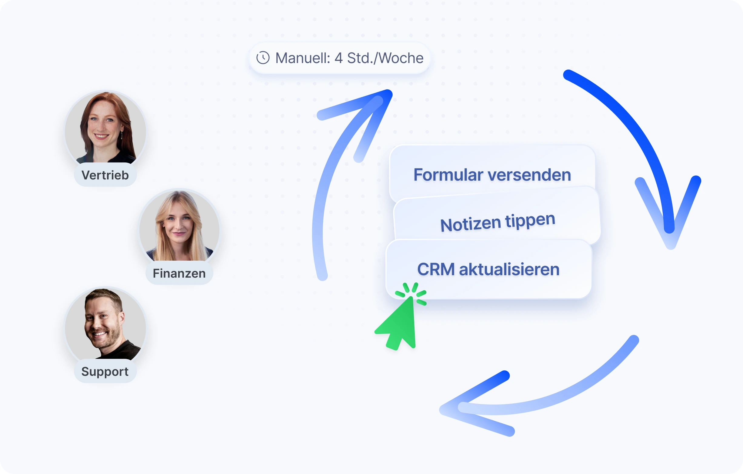Dein Team tippt manuell Notizen, legt Aufgaben an, sucht Kontakte und klickt sich durch unzählige Masken – während Automatisierung und KI all das längst übernehmen könnten.