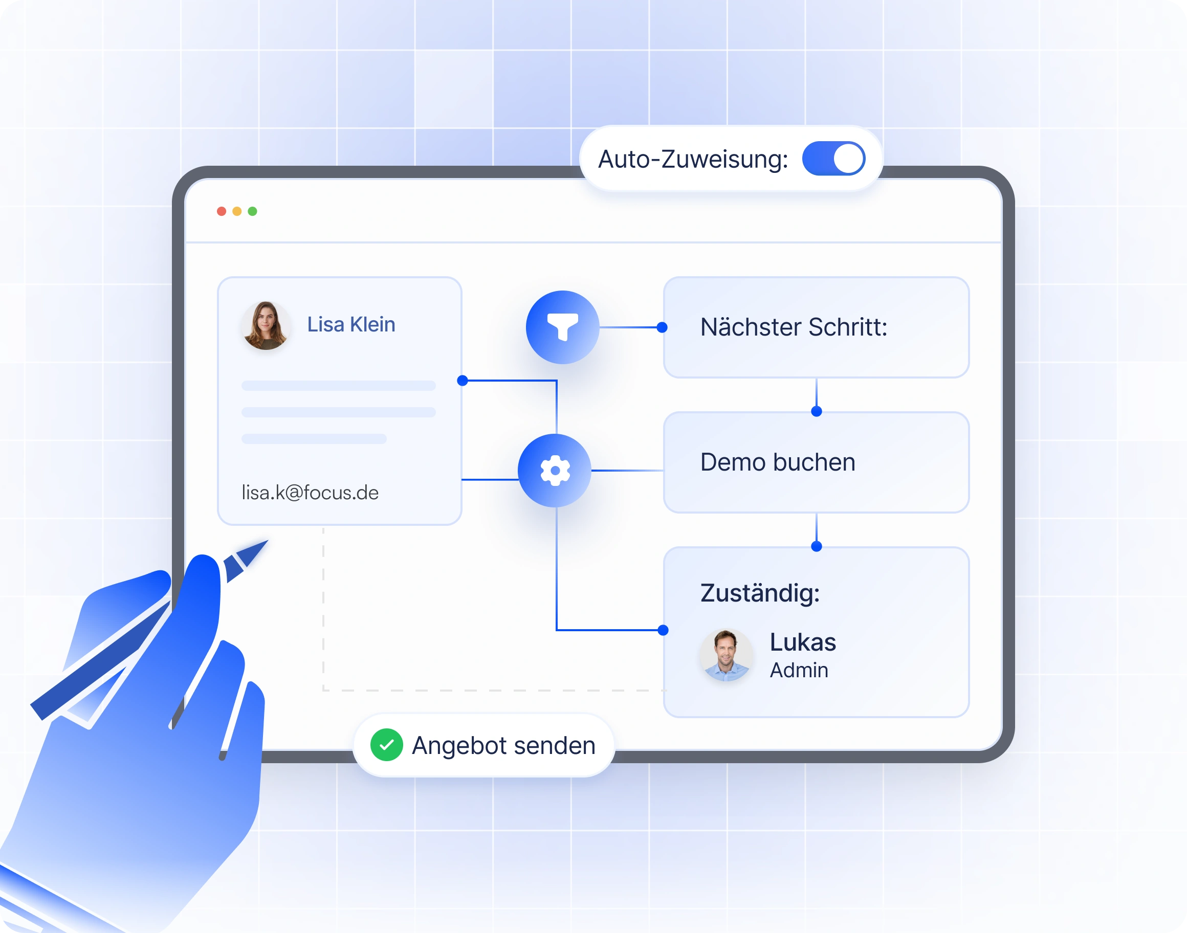 Skalieren.ai sitzt im Zentrum deines Unternehmens: Vertrieb, Marketing, Service und Management greifen hier zusammen. So laufen Follow-ups automatisch, Umsatz wird planbar und das Unternehmen kann skalieren.