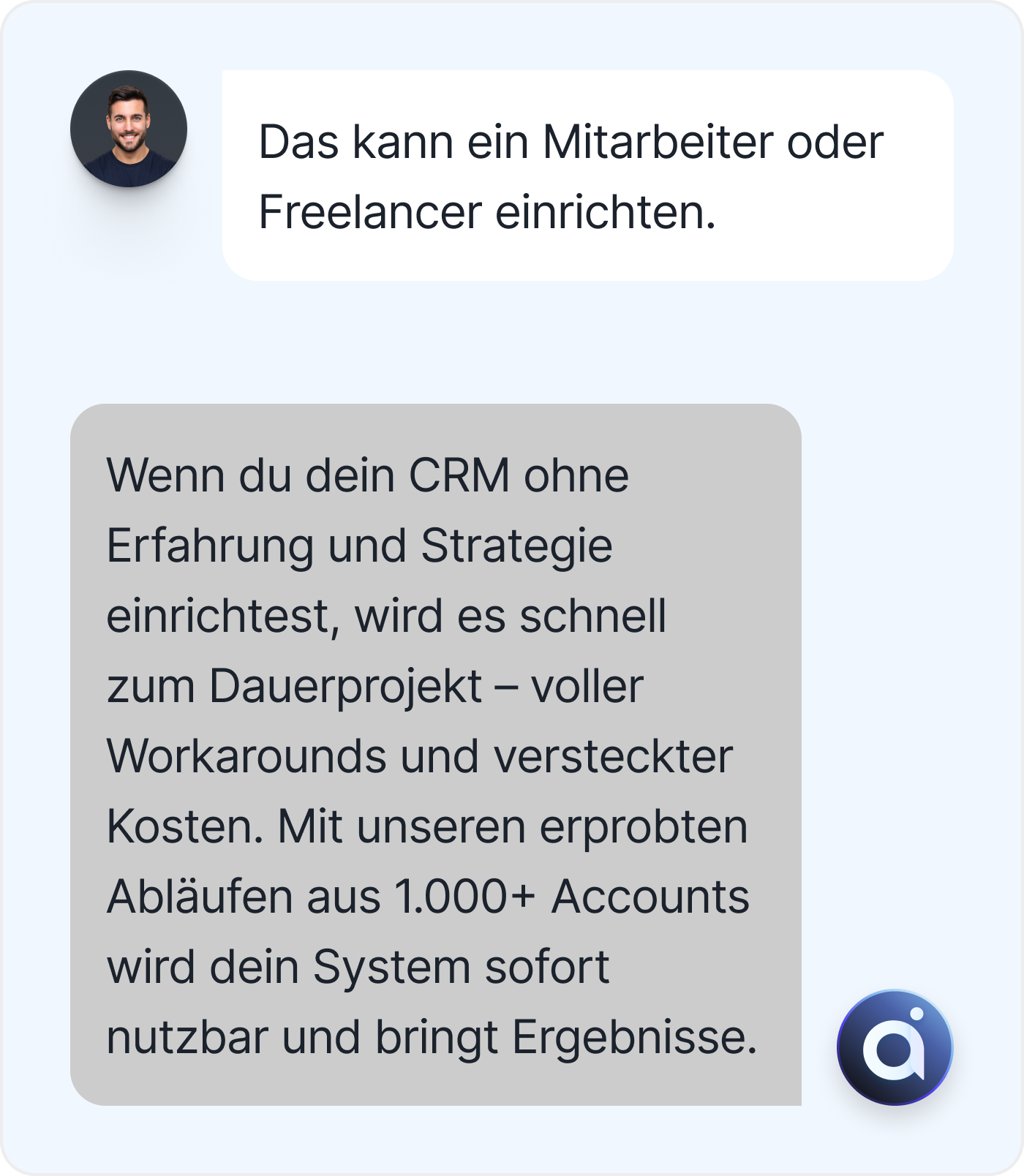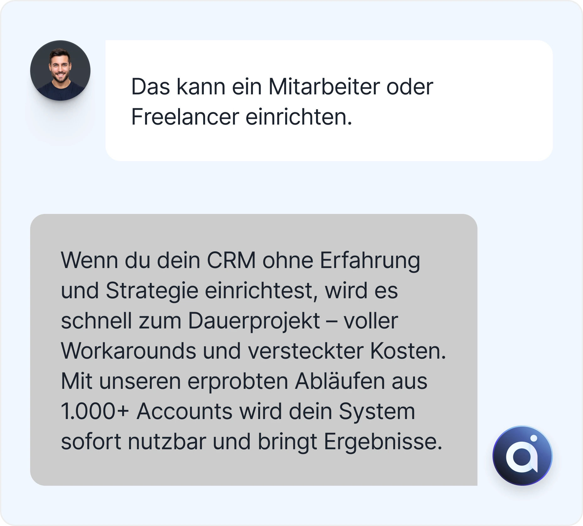 Dein CRM wird korrekt konfiguriert – Prozesse, Automationen und Integrationen laufen vom ersten Tag an.