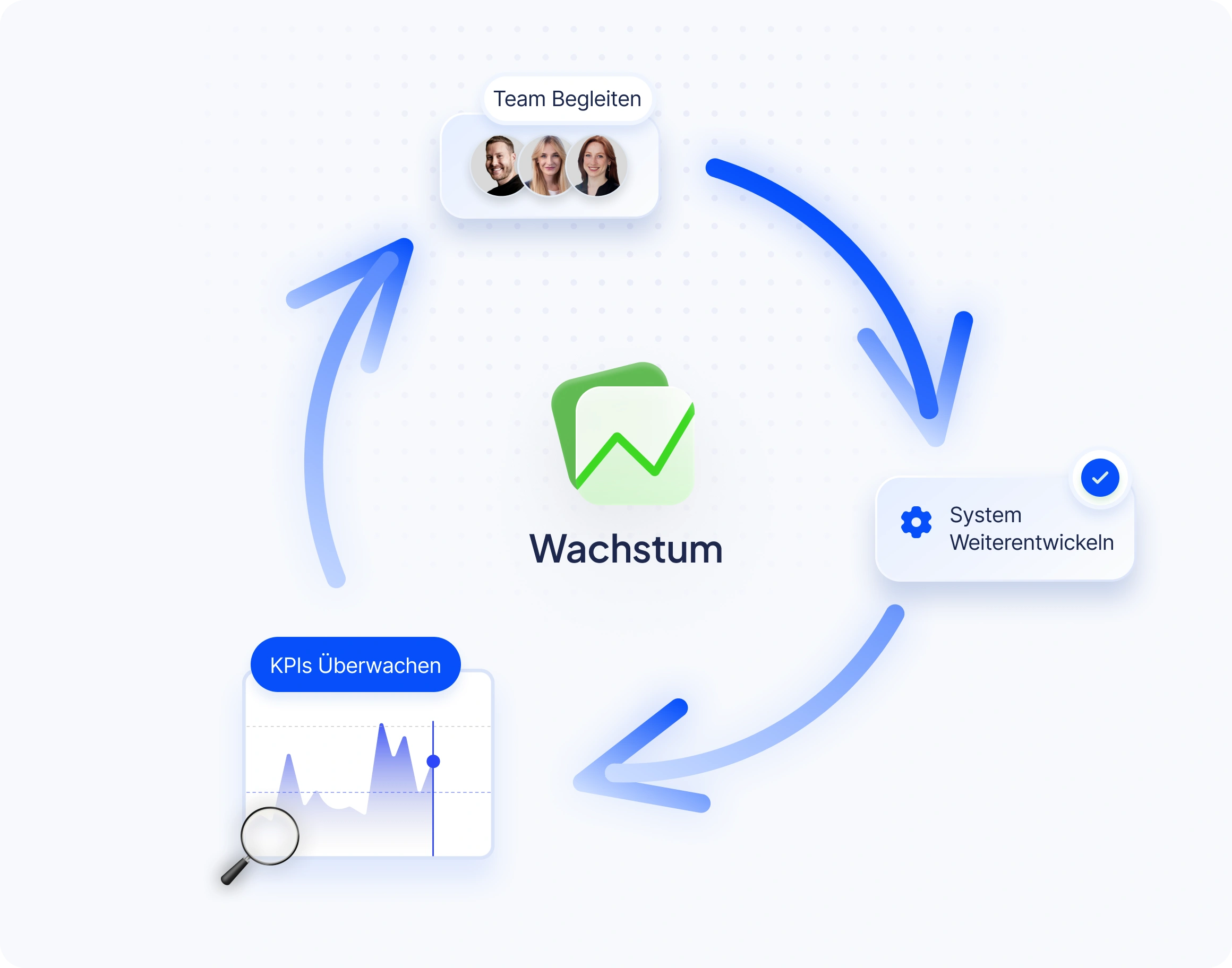 Wir begleiten dein Team, überwachen Kennzahlen und entwickeln dein System stetig weiter – damit Wachstum nicht stoppt.